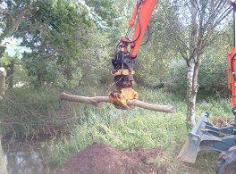 | Coir mat and hazel brash bundle installation for erosion control on acid bog in North Norfolk | Installation of flow deflector for river restoration |